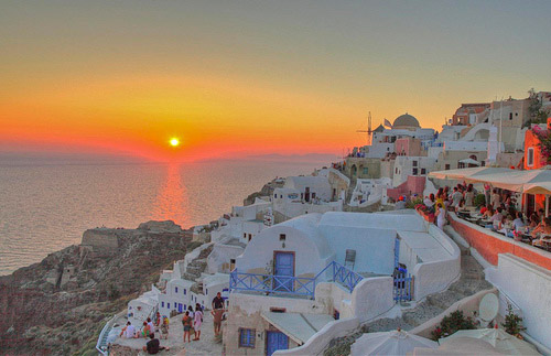 กิจกรรมที่ได้รับความนิยมอีกอย่างก็คือ เมื่อมาเยือ ซานโตรินี คือ การไปชมพระอาทิตย์ตก ที่ บ้าน เอีย (Oia or Ia) ซึ่งได้รับการยอมรับว่า เป็นสถานที่ท่องเที่ยวที่มีเสน่ห์มากที่สุด บนเกาะซานโตรินี นอกจากนี้แล้ว นักท่องเที่ยวที่มาเยือน ยังสามารถเดินทางไปยังหมู่บ้านต่างๆ ที่อยู่ใกล้เคียงกัน รวมไปถึงการไปเดินเล่นชมความงดงามของชายหาด โบสถ์ และจุดท่องเที่ยวอื่นๆที่น่าสนใจไม่แพ้กัน